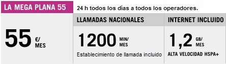 Tráfico de datos incluido en el bono: 1200MB a velocidad HSPA+